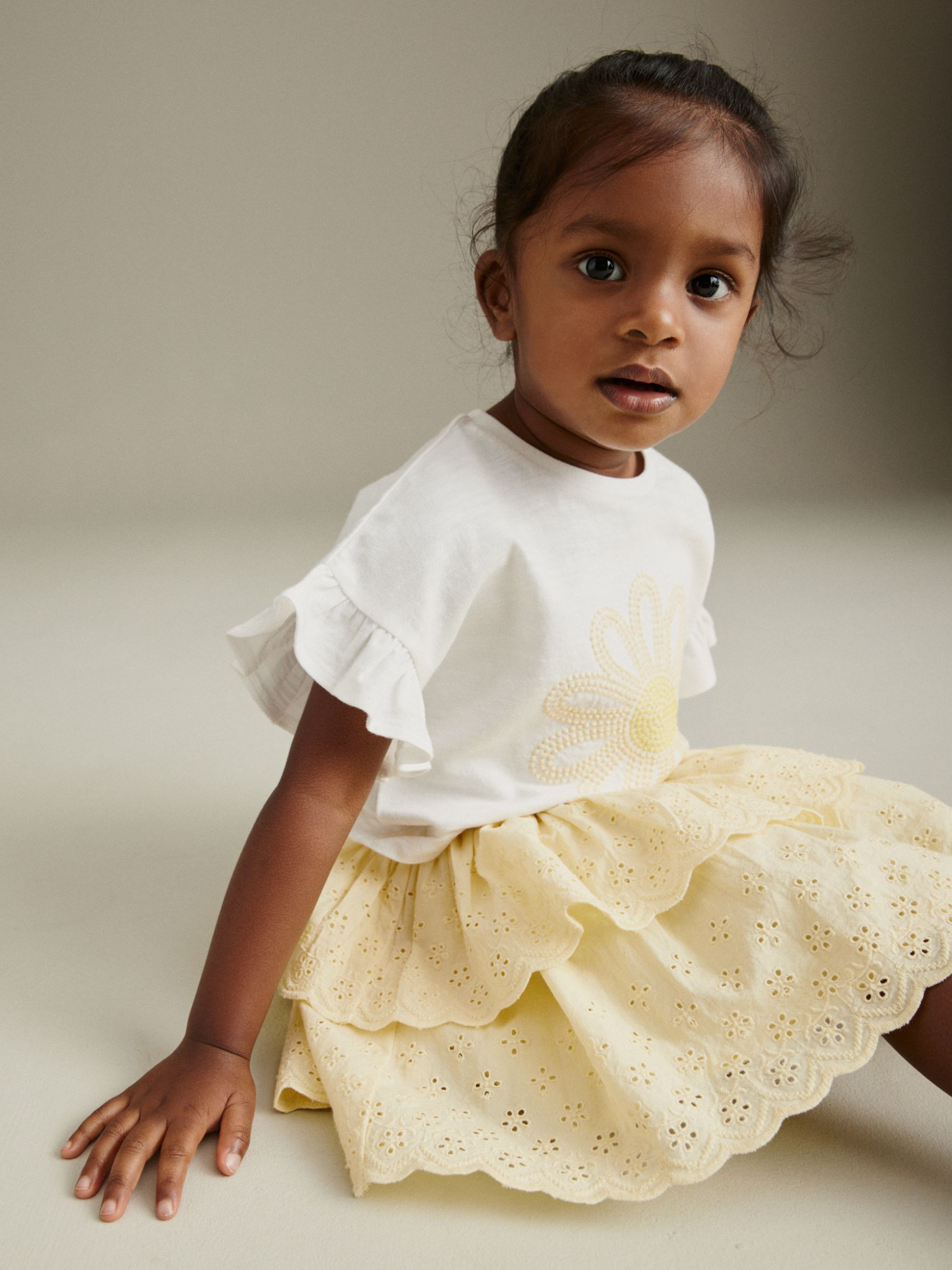 Dress your child in the adorable Next Ruffled T-Shirt & Skirt Set for a perfect blend of comfort and style.